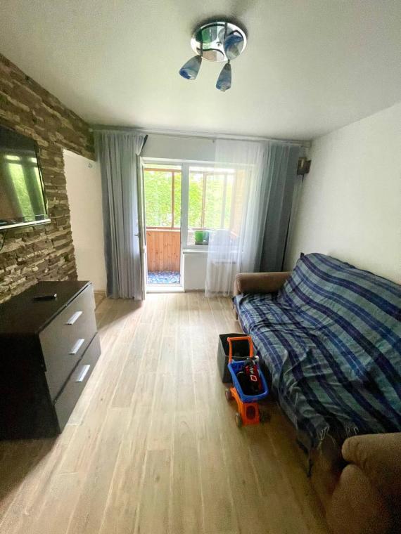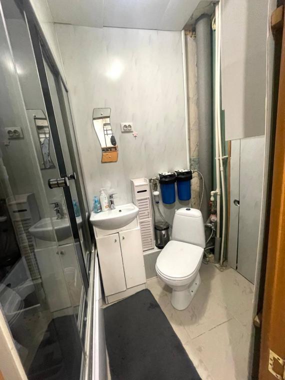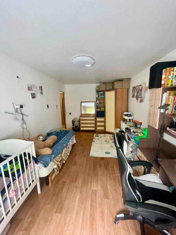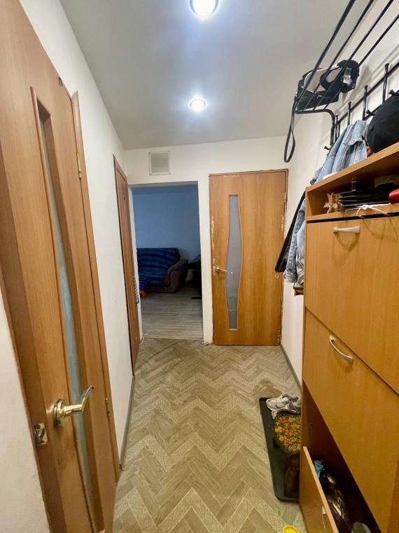 Квартира общей площадью 45 кв.м., комнаты раздельные, на две стороны (18 кв.м., 16 кв.м.), кухня 6 кв.м., санузел совмещенный, балкон застеклен и утеплен.