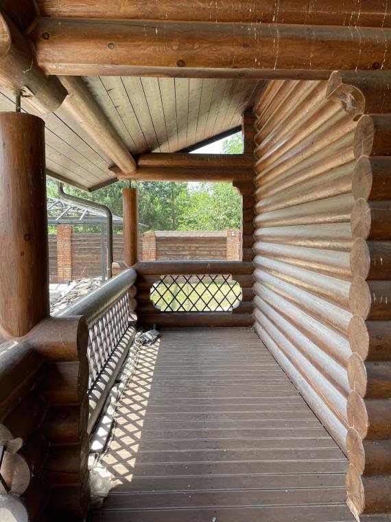 На территории расположены 3 дома, выдержанные в едином стиле: Основной дом, Гостевой дом, Баня с зоной отдыха, крытая парковка для а/м.