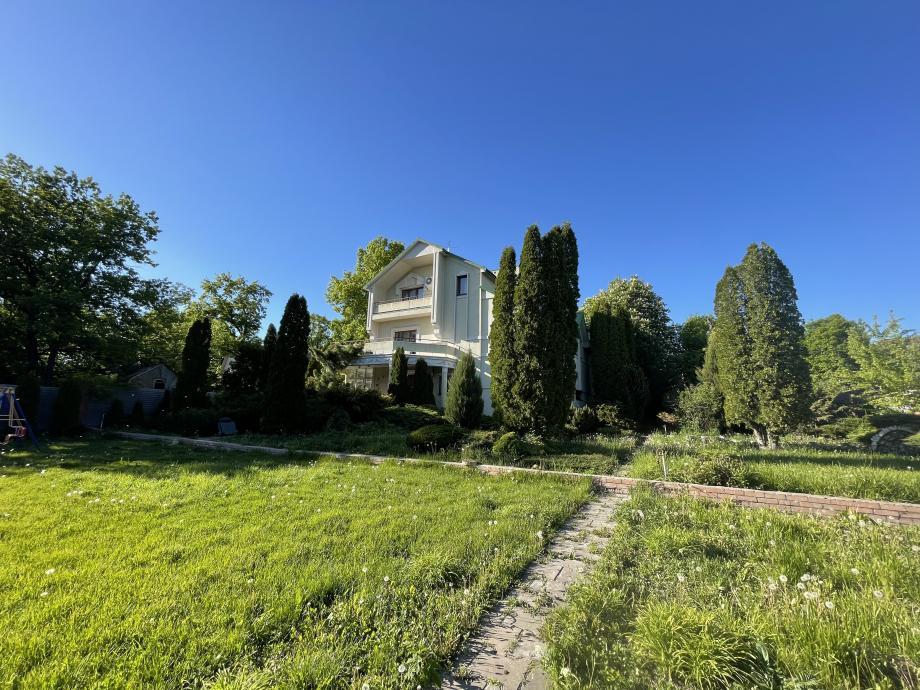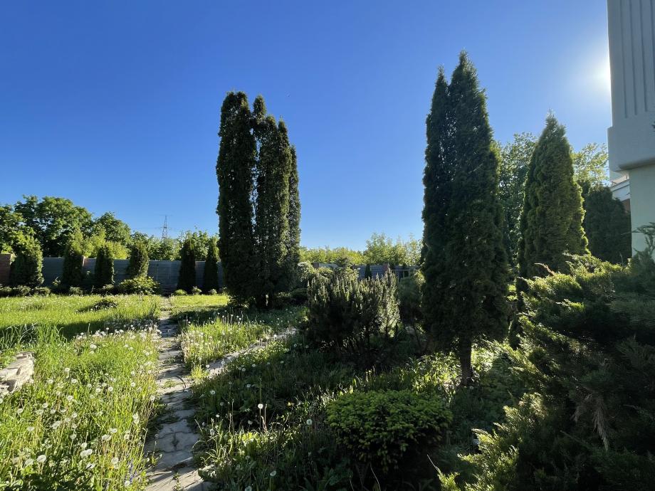 На участке отдельно стоящая баня с бассейном и комнатой отдыха (можно использовать как гостевой дом). Участок ровный, правильной прямоугольной формы, ухоженный, с ландшафтным дизайном и детской площадкой. Одна сторона участка граничит с зеленым дубовым оврагом, который можно благоустроить и оформить в собственность.