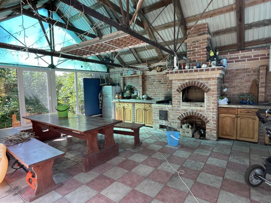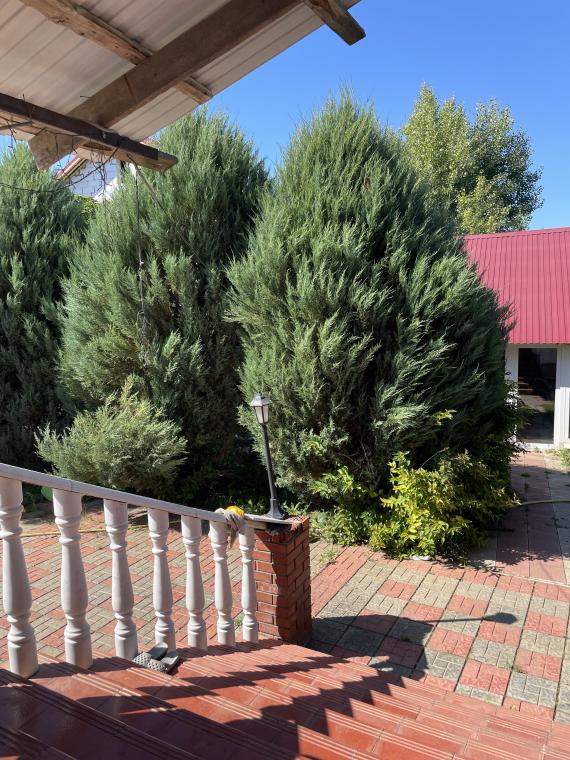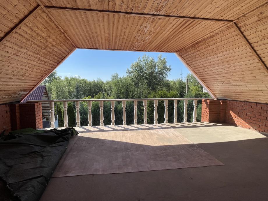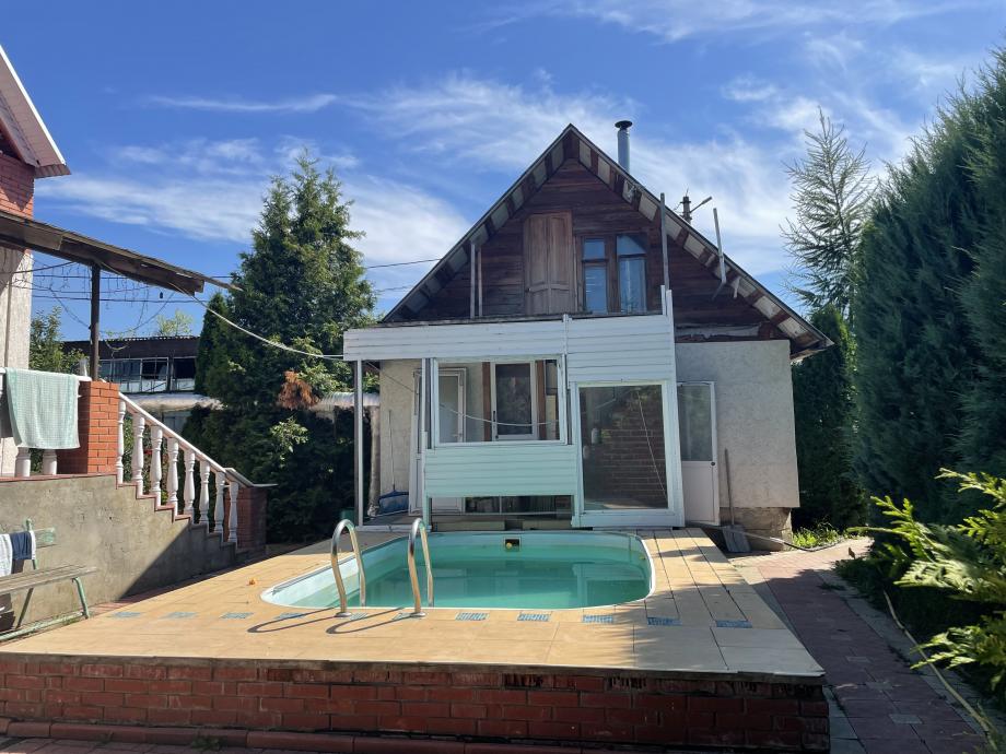 На участке: летняя веранда с барбекю и летней кухней, бассейн с системой очистки воды, баня на дровах, многочисленные декоративные и плодовые насаждения, дорожки выложены плиткой, парковка на 3 а/м,